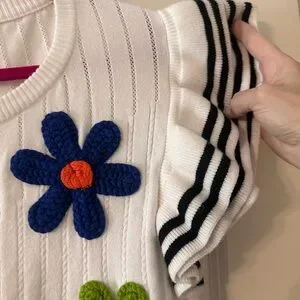 Brighten up your wardrobe with this colorful floral summer sweater. Featuring vibrant embroidered flowers and flutter sleeves.