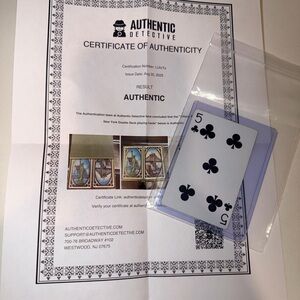Deck of Tiffany & Co. playing cards shown. Blue card backs with ornate gold and white illustration. Packaged with certificate of authenticity. Elegant collectible design.