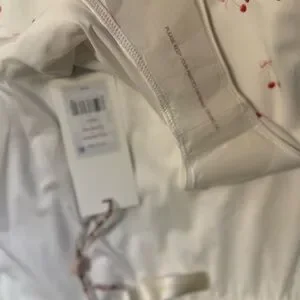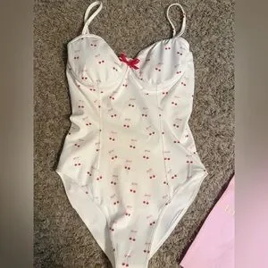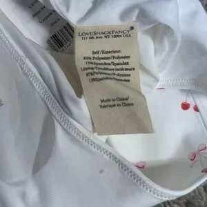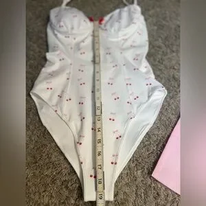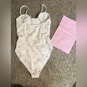 LoveShackFancy LSF One Piece Swimsuit Cherry Print Bow Print Underwire Swimsuit Bustier Swimsuit White Swimsuit NWT New With Tags Designer Swimwear Coquette Cottagecore Feminine Spring Break Vacation Resort Wear Coastal Grandmother Small Luxury Swimwear