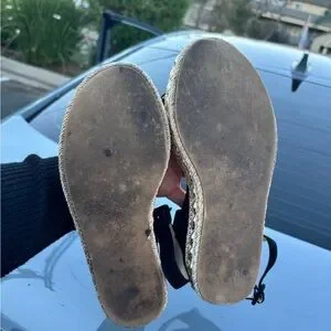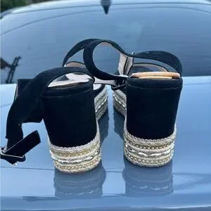 Stylish black wedges with gold bead accents. Perfect for adding height and flair.