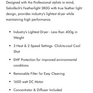 NWT Feather Light 380 Professional Hair Dryer - Black