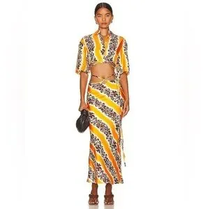 Christopher Esber Revolve Midi Silk Satin Orange Hibiscus Tie Waist Womens 8 New
