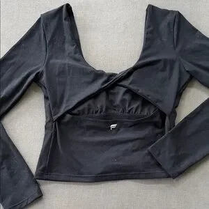 Fabletics Oasis Twist Built-In Bra Long-Sleeve Top - S - Black
