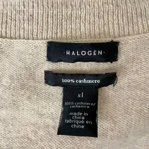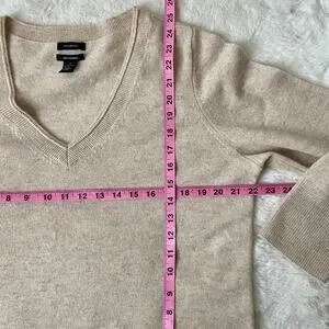 Tan/beige 100% cashmere beautiful v-neck sweater by Halogen. Amazing quality. Super soft. Size XL. Measurements in photos.