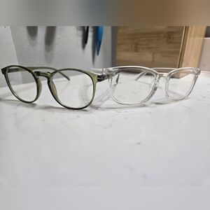 Set of two stylish glasses. One in green and one in clear. I love these SO much but have way too many! Bought on Amazon for $15 a piece.