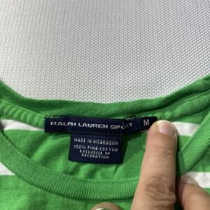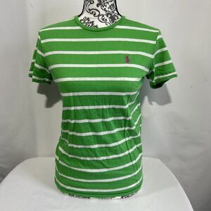 Ralph Lauren Sport Shirt Women's Sz Medium White Green Stripe Pink Pony Tee