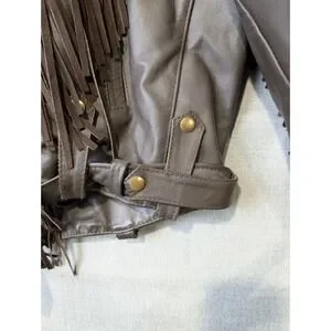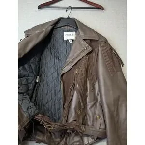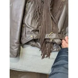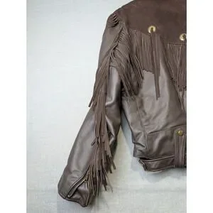 VTG Park V Leather Insulated Fringe Jacket Mens 46 Brown Suede Western Biker