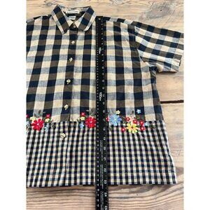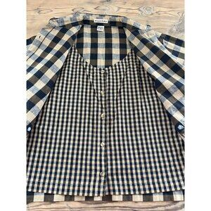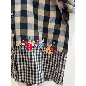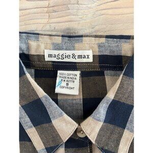 VTG 90s Maggie & Max Button Up Shirt Womens S Navy Buffalo Plaid Embroidered