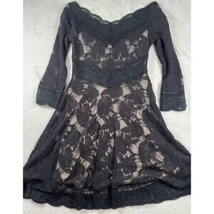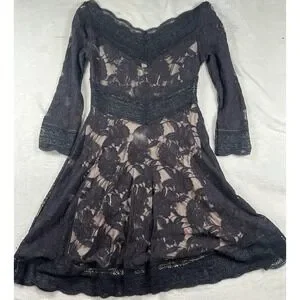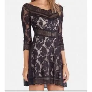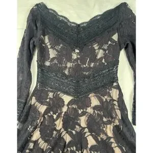 Free People Lacey Affair Lace Cutout Mini Dress in Black Size XS RETAIL $168