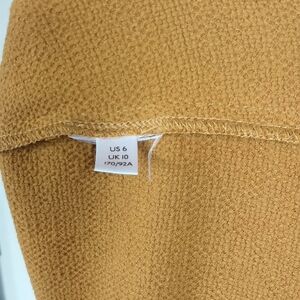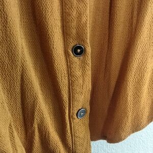 Anthropologie Maeve size 6 sleeveless mustard top with crossover cut at the top and buttons up the back. Perfect for any occasion, it offers a chic and comfortable fit. Perfect burnt yellow / orange color for the fall. Textured fabric.