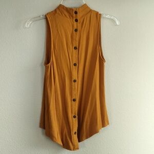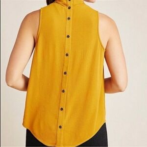 Anthropologie Maeve Size 6 Sleeveless Mustard Top With High Cross Neck & Buttons