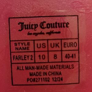 BRAND NEW JUICY COUTOURE ANCIENT GREEK STYLE WOMEN'S SANDAL SIZE 10M COLOR PINK This season, Ancient Greek Sandals presents the juicy couture style, the perfect ballerina to wear to the beach or for a walk on the island. Comfortable and water-resistant, this jelly ballerina will become your new summer must-have.Composition: 100% pink mesh slip-on shoes. Perfect for casual wear.THIS ITEMS IS BRAND NEW WITH TAG NO BOX CHECK THE PICTURES OF THE(FYI THE FIRST PICTURES IS JUST A MODEL CHECK THE PICTURES