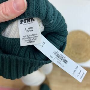 Embrace ultimate comfort and style with this PINK Victoria's Secret turtleneck sweater. This charming knit features a chic off-white and green color block design, perfect for adding a fresh pop of color to your wardrobe. Its cozy feel makes it an ideal choice for chilly winter days or a fun ski trip adventure. Pair it with your favorite jeans or leggings for an effortlessly stylish and warm ensemble.