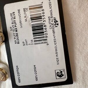 Mexx Cream long sleeve shirt with Floral Embroidery, NWT, Size Small