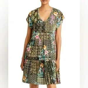 Johnny Was Weller Tiered Hem V-neck Mini Dress Sz Small Women's