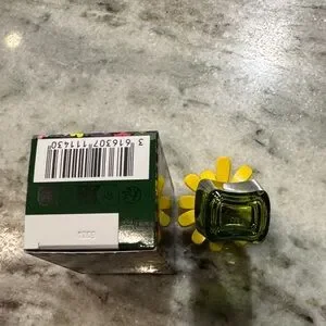 Charming fragrance in a green bottle with a playful yellow flower cap. Perfect for adding elegance to your collection.