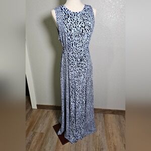 Michael Kors Sleeveless Blue and White Maxi Dress Keyhole Neck Tank Dress