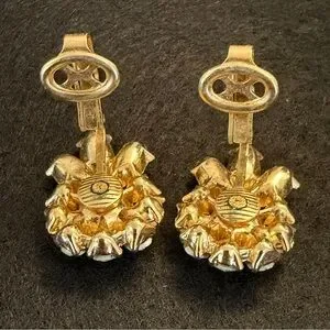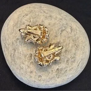 Crown Trifari Vintage Aurora Borealis Floral Clip On Earrings