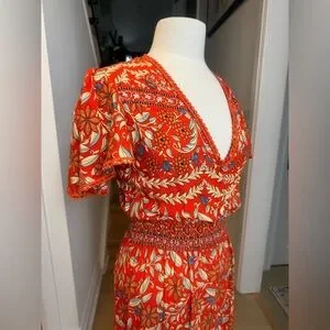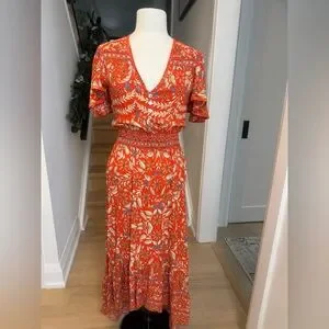 Anthropology Abel The Label Elegant Floral V-Neck Asymmetrical Dress S