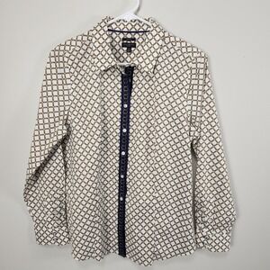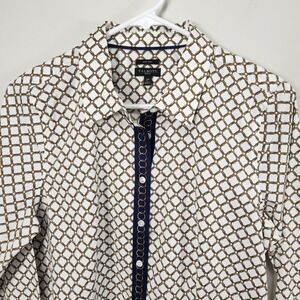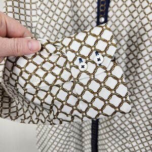 Talbots NWOT Petites Chain Button Down Blouse 12P Chain Print Navy White Gold