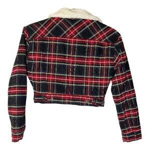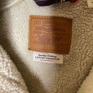 Levi's Cream Sherpa Jacket with Corduroy Plaid Accents Sz XS