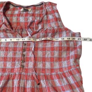 Pilcro Anthropologie, plaid top, sleeveless top, babydoll top, boho top, casual top, summer top, lightweight top, red plaid, blue plaid, button front top, V neck top, flowy top, feminine top, cottagecore, everyday wear, size small, Anthropologie top, relaxed fit, layering piece