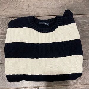 Brandy Melville Navy and Cream Striped Crewneck Knit Sweater