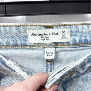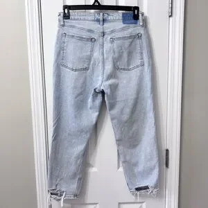 Abercrombie & Fitch The Mom High Rise Distressed Light Wash Jeans Size 10s