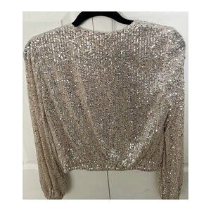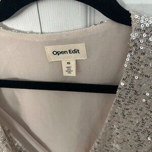 Open Edit Women's Sequin Long Sleeve Wrap Top Party Blouse Size XS
