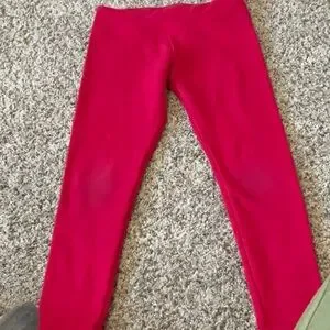 Cozy gray top with plaid trim. Bright red cozy leggings. Perfect for play and comfort.