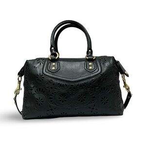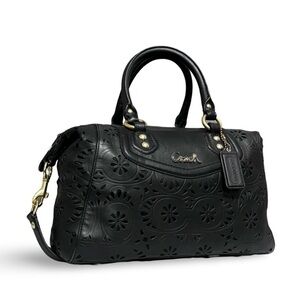 Coach Black Laser Cut Leather Ashley Convertible Satchel Shoulder Bag Restored