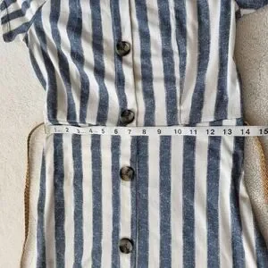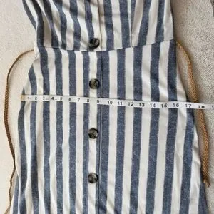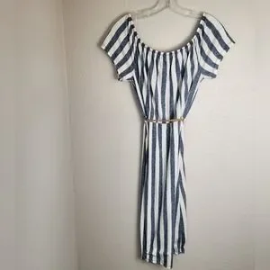 Derek Heart Blue Striped Belted Summer Dress Button Down Off Shoulder Option