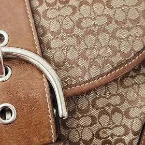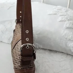 Coach Tan and Brown Signature Shoulder Bag With Leather Corner Accents H04W-6818