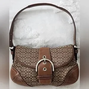 The signature camel color is sophisticated and versatile, making it the...Elegant Coach shoulder bag with iconic monogram design. Features a sleek buckle accent.