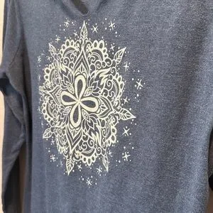 District Boho Mandala Graphic Hoodie Shirt Navy Blue Long Sleeve Soft M
