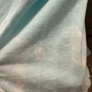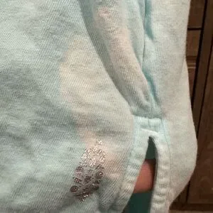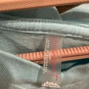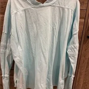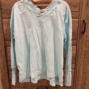 Stylish light blue V-neck long sleeve free people movement top. Size XS. Higher front and lower back style. See last few photos for bleach stain.