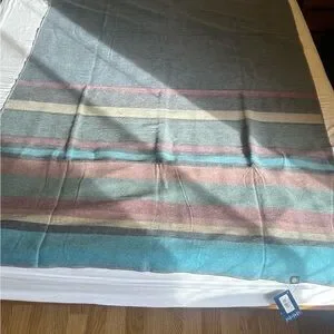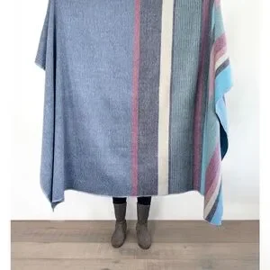 NWT Shupaca Blue Bird Striped Multicolor Throw Blanket Alpaca blend