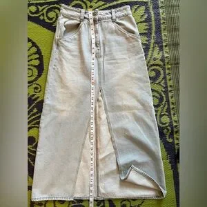 Les Coyotes De Paris Joy Denim Skirt Size FR 38. The Joy Skirt by Les Coyotes De Paris is a flattering long denim skirt in a light colour denim featuring a high split at the front. 100% Cotton