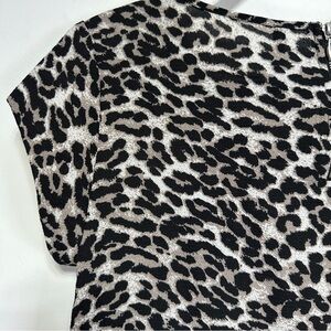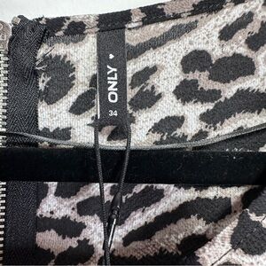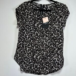 ONLY Grey Black Leopard Print Blouse Zip Back Short Sleeve Top NWT Size XS EU 34