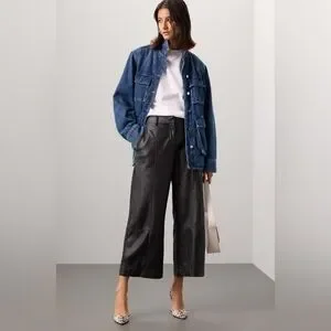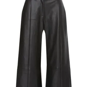 Jason Wu Collection Black Faux Leather Wide Leg Cropped Pants Size 6