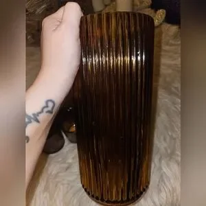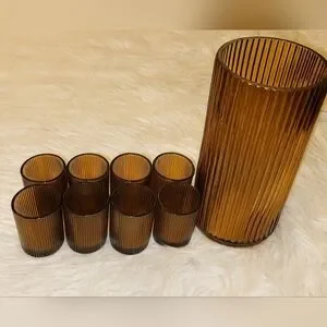 Create a warm, elegant atmosphere with this Amber Ribbed Decor Set — perfect for home styling, weddings, events, or cozy seasonal décor. This curated set includes one tall Ashland vase and eight matching amber ribbed candle jars.