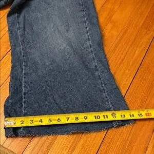 Stylish dark blue flare jeans by Pilcro. Perfect for a modern look. These run large! See measurements for waist and leg measurements!
