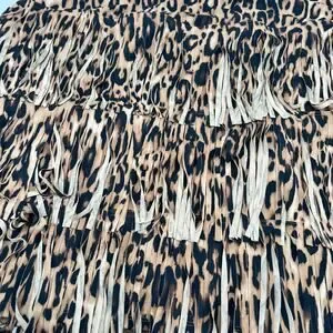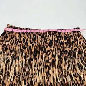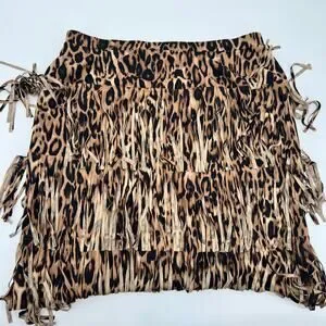 CHICO'S BROWN ANIMAL LEOPARD PRINT FRINGE PULL ON SKIRT size 2 US large