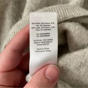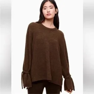 Aritzia The Group Babaton Malcorra Tie Sweater Light Grey Wool/Yak Blend Size S