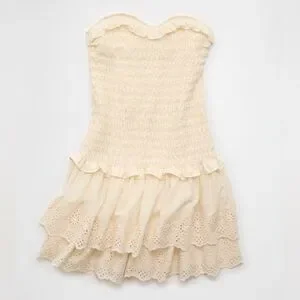 American Eagle Strapless Smocked Mini Ruffle Dress