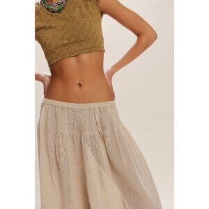 FREE PEOPLE Free-Est Rising Sun Wide-Leg Smocked Low-Rise Oatmeal Pants Sz M