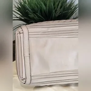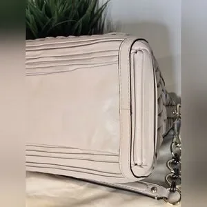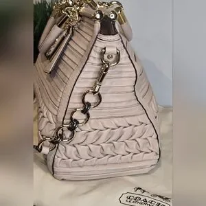 Coach Madison Caroline satchel in pleated gathered leather. It is a limited edition carryall characterized by its intricate hand-finished pleated and gathered leather detailing and polished hardware.