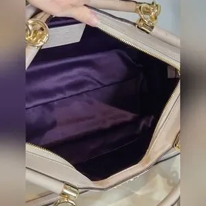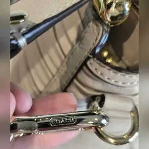 Its exquisite features includes roll framed top, Coach signature Horse & Carraige logo, a zip-top closure, purple satin lining, interior multifunction pockets, and top handles with approximately a 6" drop. It comes with a removable shoulder/crossbody strap.