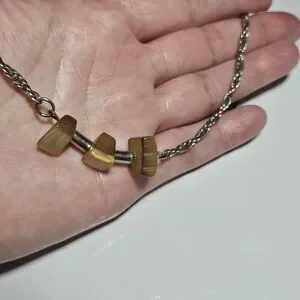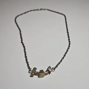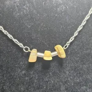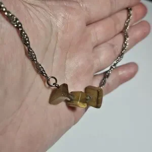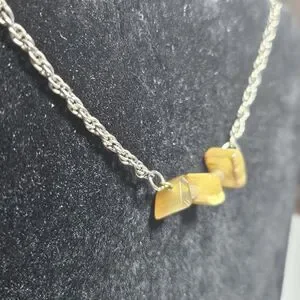 This Silver Tone Twisted Chain Necklace with Tiger's Eye stone is a stylish and trendy piece of jewelry. The 18-inch chain design adds a chic touch to any outfit, while the inclusion of Tiger's Eye stone brings a touch of natural beauty. Perfect for everyday wear or special occasions, this necklace is sure to make a statement with its unique design and eye-catching stone.