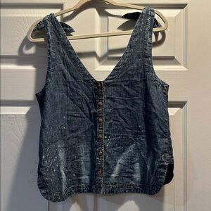 Anthropologie Pilcro Denim Tie Strap Swing Tank Top 4 Button Back Boho